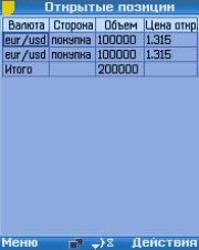 Все операции с таблицей «Открытые позиции» производятся через меню «действия»,