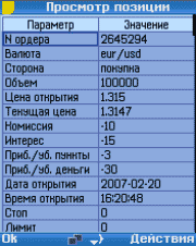 При выборе этого пункта выделенная открытая позиция отображается в виде вертикальной таблицы в расширенном виде.