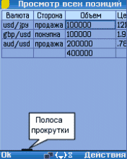 Передвижение по ней как и в остальных случаях осуществляется клавишами вверх–вниз (джойстиком). Вертикальная полоса прокрутки показывает при этом текущее положение.