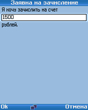 Укажите требуемую сумму, нажмите «Ок» и следуйте дальнейшим инструкциям.
