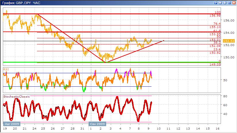 Валюта находится во флете между уровнями 23,6 и 50% по Фибоначчи. Сейчас есть потенциал роста к уровню 61,8% по Фибоначчи. Возможно, дальнейшее движение в сторону падения, необходимо будет для это дождаться пересечения Stohastic-а, тогда можно будет эту валюту продавать. Волатильность это валютной как всегда высока. Классический индикатор RSI уже подает сигнал к продаже. Линии поддержки и сопротивления остаются на данный момент довольно сильными, возможно также говорить о восходящем движении, оно скоро будет скорректировано.