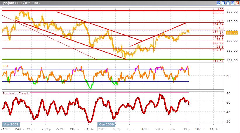 Сейчас восходящее движение этой валютной пары продолжается, образуя новый канал роста в котором она и находится, но он возможно будет пробит в ближайшее время. Эта валюта дошла до уровня в 61,8% по Фибоначчи, и откатывается от него вниз, как раз произведя пробитие его. Классические индикаторы такие как Stohastic и RSI которые нам указывают дальнейшее движение в сторону продажи, причем у каждого индикатора по две вершины, указывающие на силу данного движения. Краткосрочная цель данного движения это уровень 38,2% по Фибоначчи, в дальнейшем скорее всего будет рост.