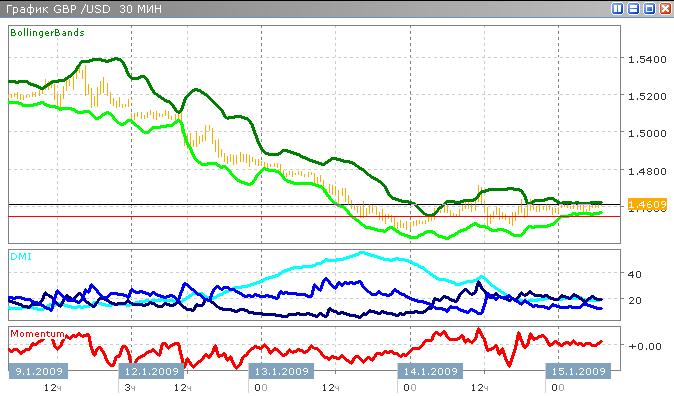 После небольшого роста и падения накануне пара выровнялась и теперь колеблется вблизи 1.4600. Скорость изменения цены практически нулевая. Индикатор среднего направленного движения ADX находится на уровне 20, поэтому здесь тренд тоже слаб, как и у остальных пар. Больших скачков как в минус так и в плюс ждать не приходится, вероятнее всего, в течение дня продолжатся колебания внутри диапазона, ограниченного уровнями 1.4546 и 1.4649.