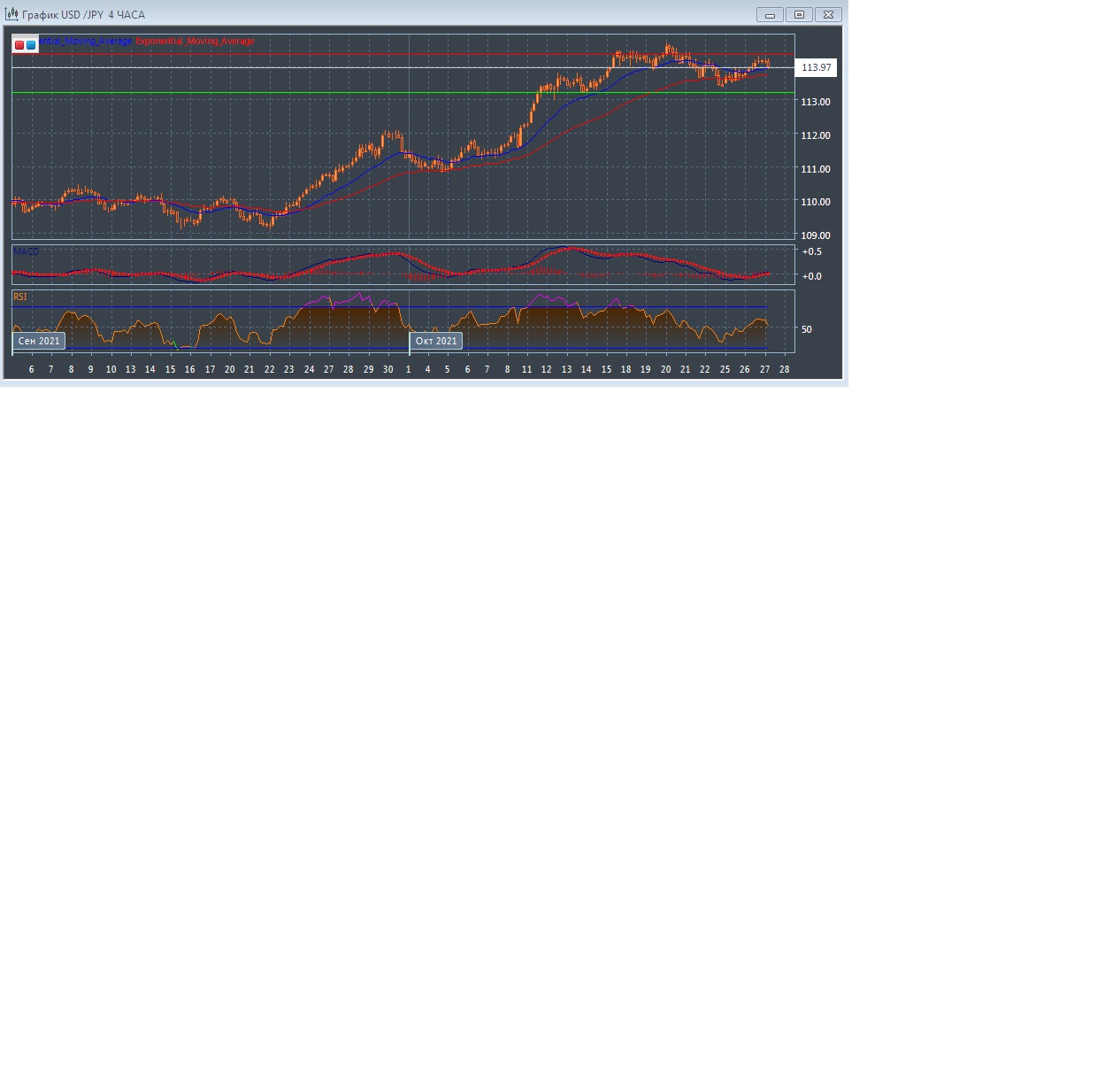 Скользящие средние с периодом 21 и 55 дней разворачиваются вверх, замедлились и теперь увеличивают расхождение, что свидетельствует об укреплении восходящей тенденции на этом рынке в краткосрочной перспективе. Четырёхчасовой график прогрессирует в области выше экспоненциальных скользящих средних, подтверждая укрепление восходящего тренда на этом рынке в краткосрочной перспективе.