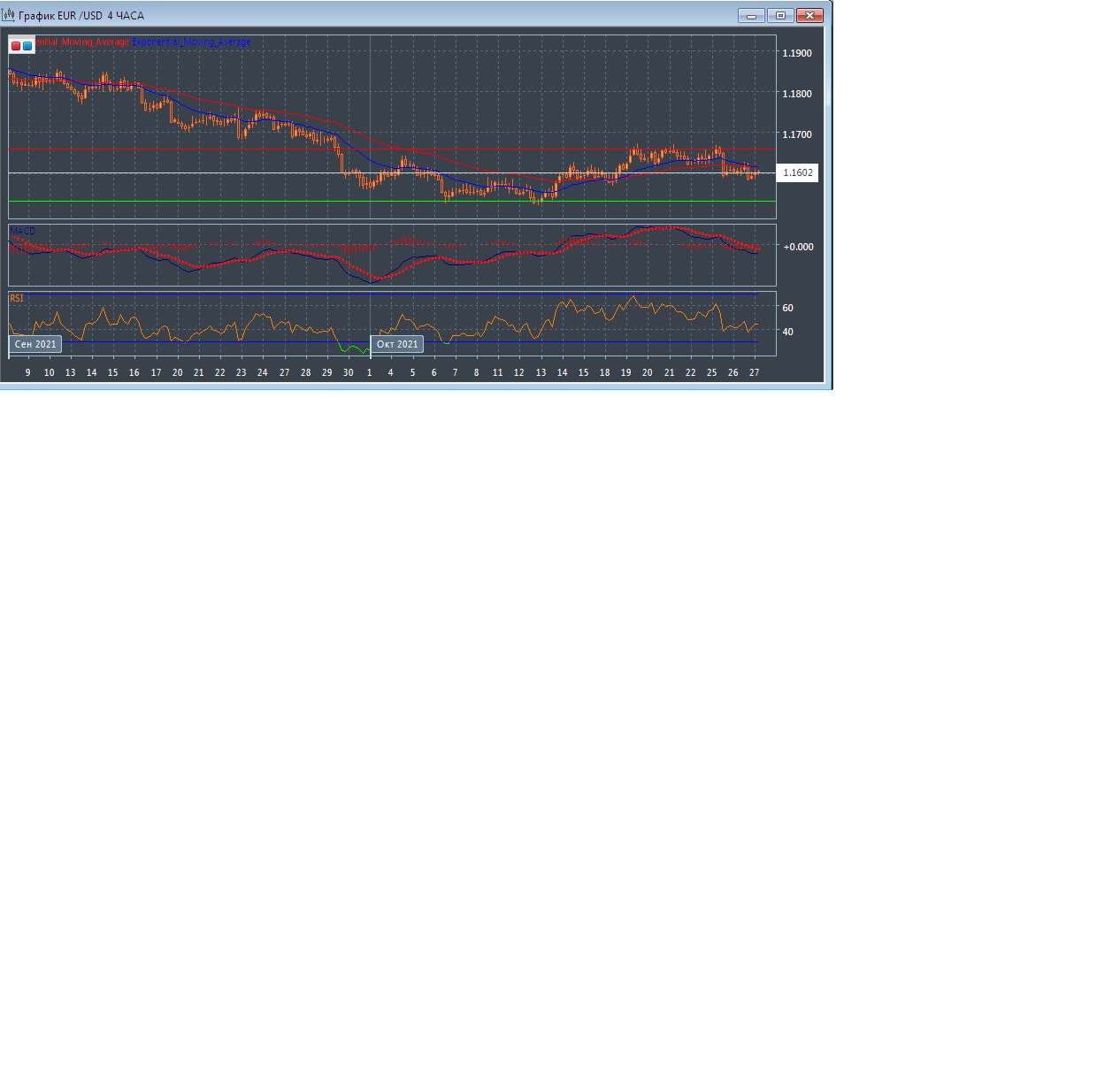 Скользящие средние с периодом 21 и 55 дней продолжают двигаться вниз и сформировав сигнал на продажу, увеличивают расхождение, что говорит о нисходящем потенциале этого рынка в краткосрочной перспективе.