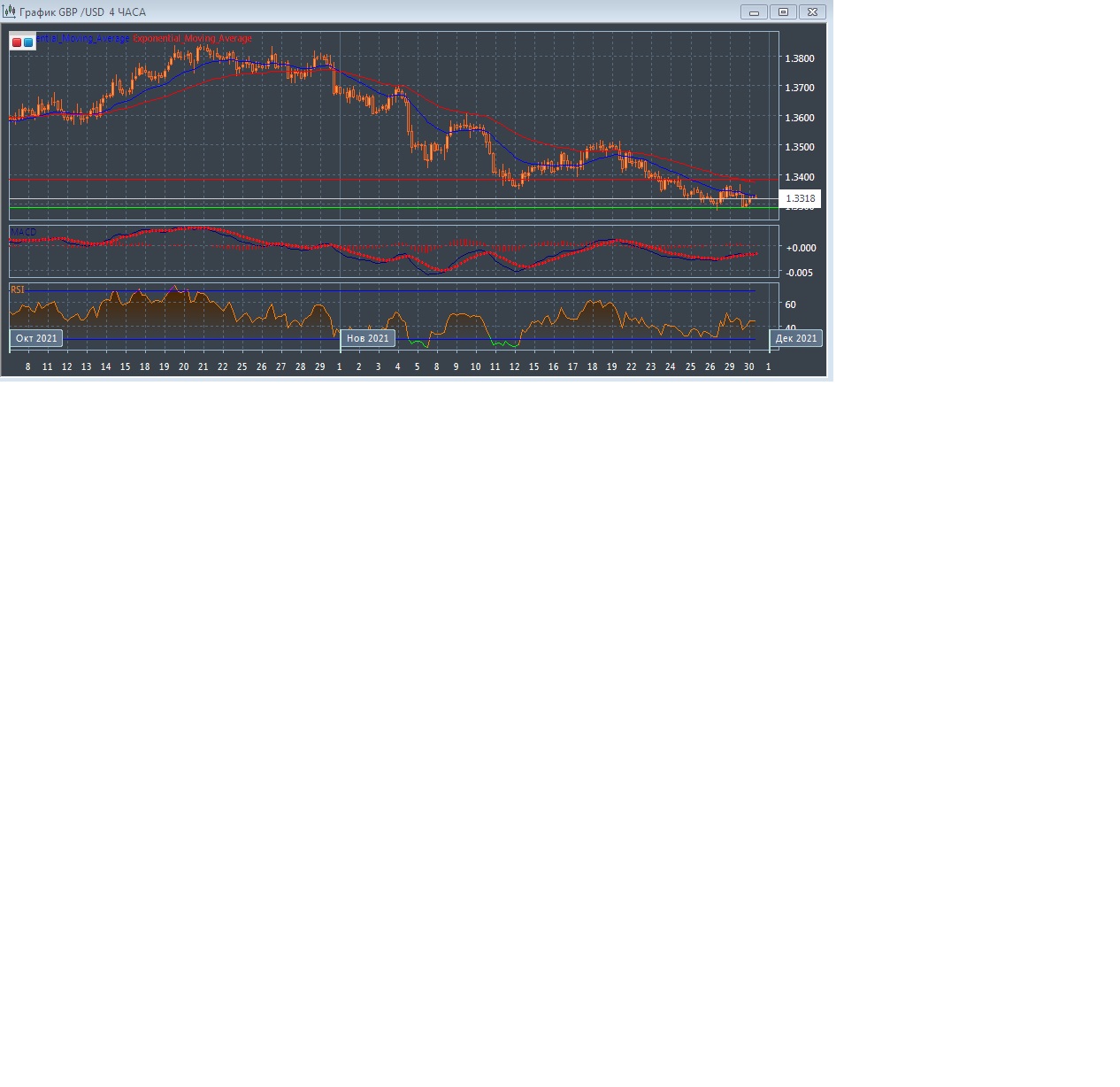 С открытием торгов в Азии во вторник данная валютная пара торгуется с понижением котировок, оставаясь в пределах текущего уровня поддержки на 1.3288 и уровня сопротивления на 1.3385, где график рынка прогрессирует чуть ниже экспоненциальных скользящих средних с периодом 21 и 55 дней, демонстрируя слабое преимущество продавцов на этом рынке в краткосрочной перспективе.