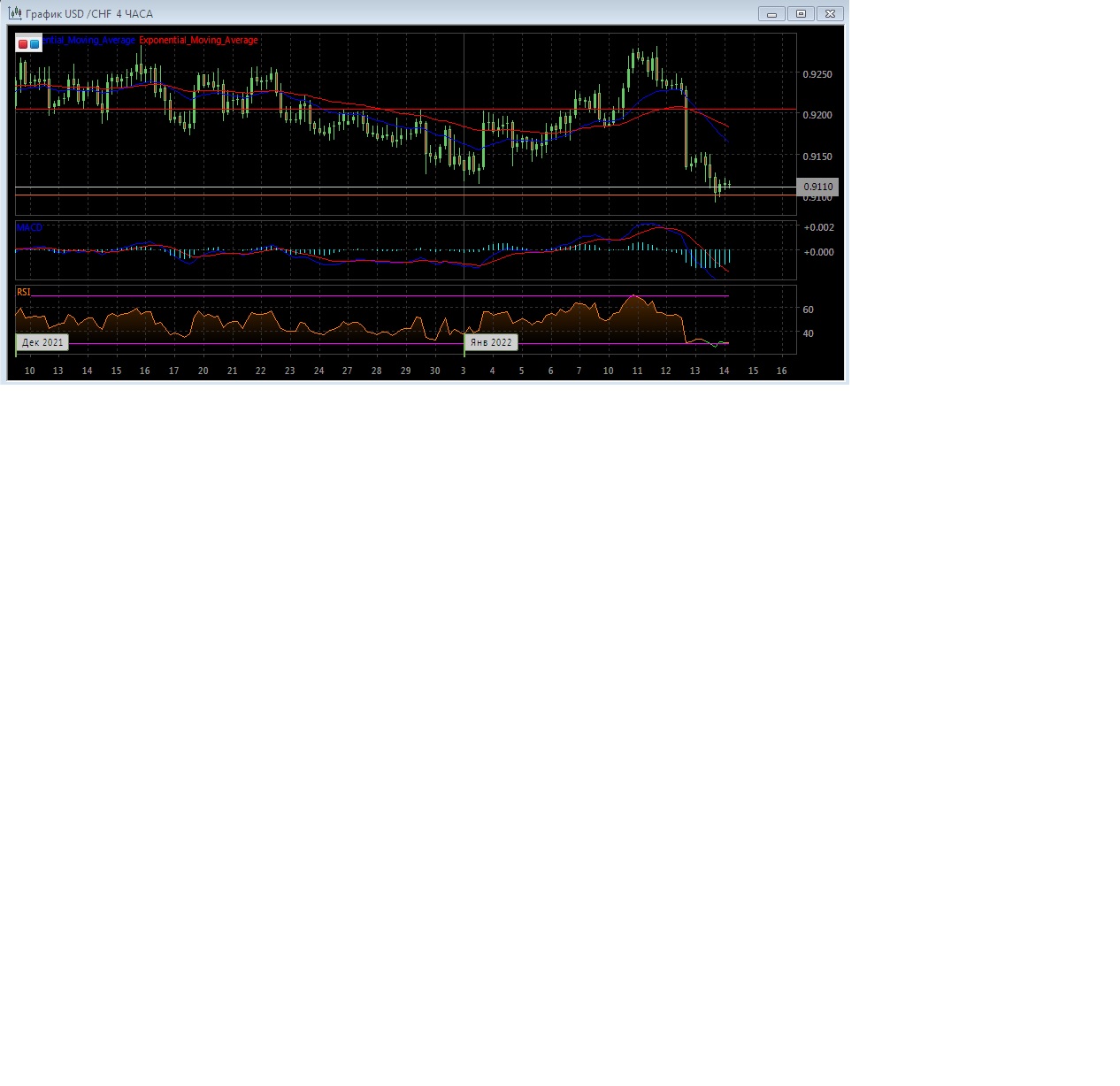 На четырёхчасовом графике скользящие средние с периодом 21 и 55 развернулись вниз, сформировали сигнал на продажу и продолжают снижение с увеличением расхождения, что демонстрирует продолжение нисходящего тренда на этом рынке. Четырёхчасовой график котировок развивается в области существенно ниже экспоненциальных скользящих средних, подтверждая укрепление нисходящего потенциала данного рынка в краткосрочной перспективе.