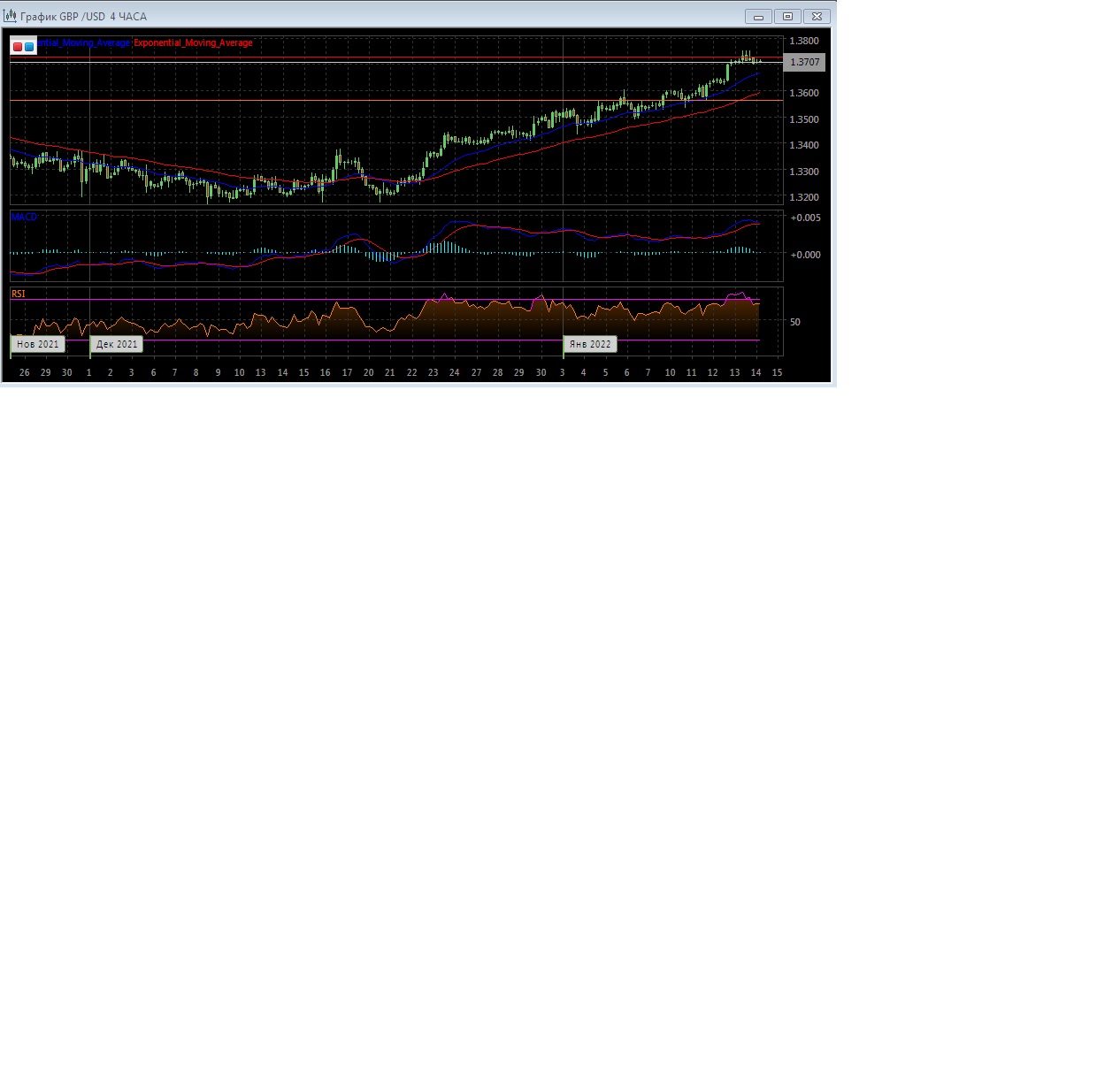 На четырёхчасовом графике скользящие средние продолжают движение вверх и увеличивают расхождение, что так же свидетельствует в пользу бычьего тренда на этом рынке.