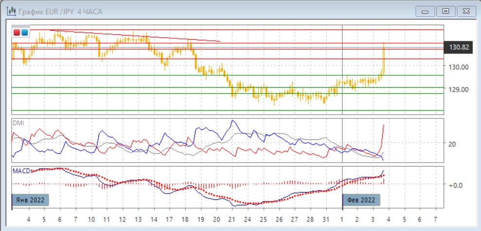 Уровни сопротивления: 130,00; 130,30