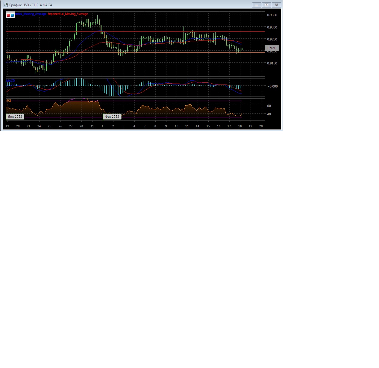 На четырёхчасовом графике скользящие средние с периодом 21 и 55 замедлились и развернулись вниз, сократив и без этого уже минимальное расхождение, формируя сигнал на продажу что демонстрирует отсутствие наличие медвежьего тренда на этом рынке. Четырёхчасовой график котировок развивается ниже экспоненциальных скользящих средних, свидетельствуя о нисходящем потенциале данного рынка в краткосрочной перспективе.