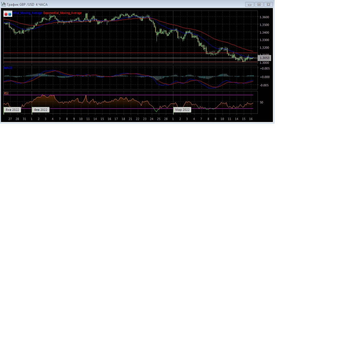 На четырёхчасовом графике скользящие средние продолжают движение вниз, сохраняя расхождение, но чуть замедлились, что свидетельствует о медвежьем настрое этого рынка и сегодня.