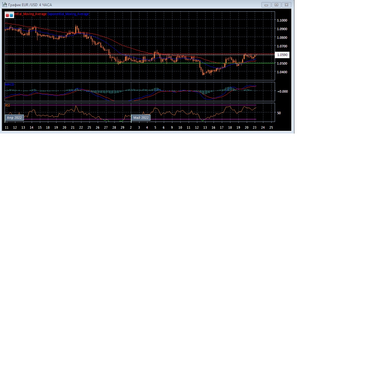 На торгах в Азии в понедельник валютная пара EUR/USD торгуется с небольшим повышением котировок, оставаясь в пределах текущего уровня поддержки на 1.0492 при уровне сопротивления на отметке 1.0601. Четырёхчасовой график прогрессирует выше экспоненциальных скользящих средних, демонстрируя продолжение восходящей тенденции на данном рынке в краткосрочной перспективе.