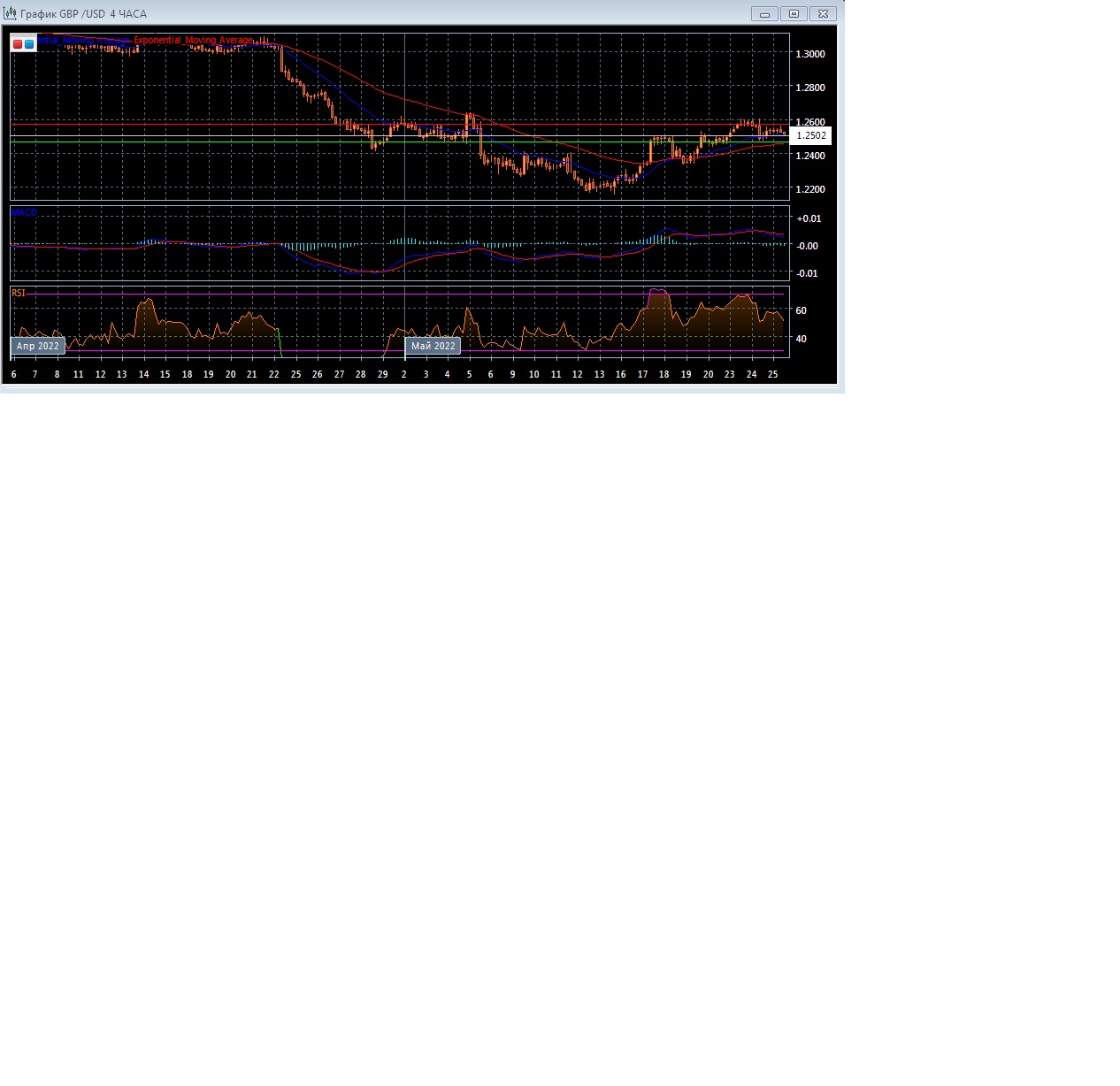 На четырёхчасовом графике скользящие средние замедлились, но продолжают двигаться вверх, сохраняя небольшое расхождение, что свидетельствует о слабеющем, восходящем потенциале данного рынка в краткосрочной перспективе.