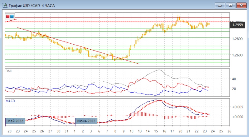 На четырёх часовом графике узким диапазоном можно рассматривать 1,2910-1,3000. В рамках движения в диапазоне более вероятно сейчас снижение к нижней границе на 1,2910. после роста пары с 9 июня текущая консолидация пока продолжается: относительные максимумы не растут, относительные минимумы не снижаются. Скорее, более крупное движение будет в сторону выхода из диапазона.