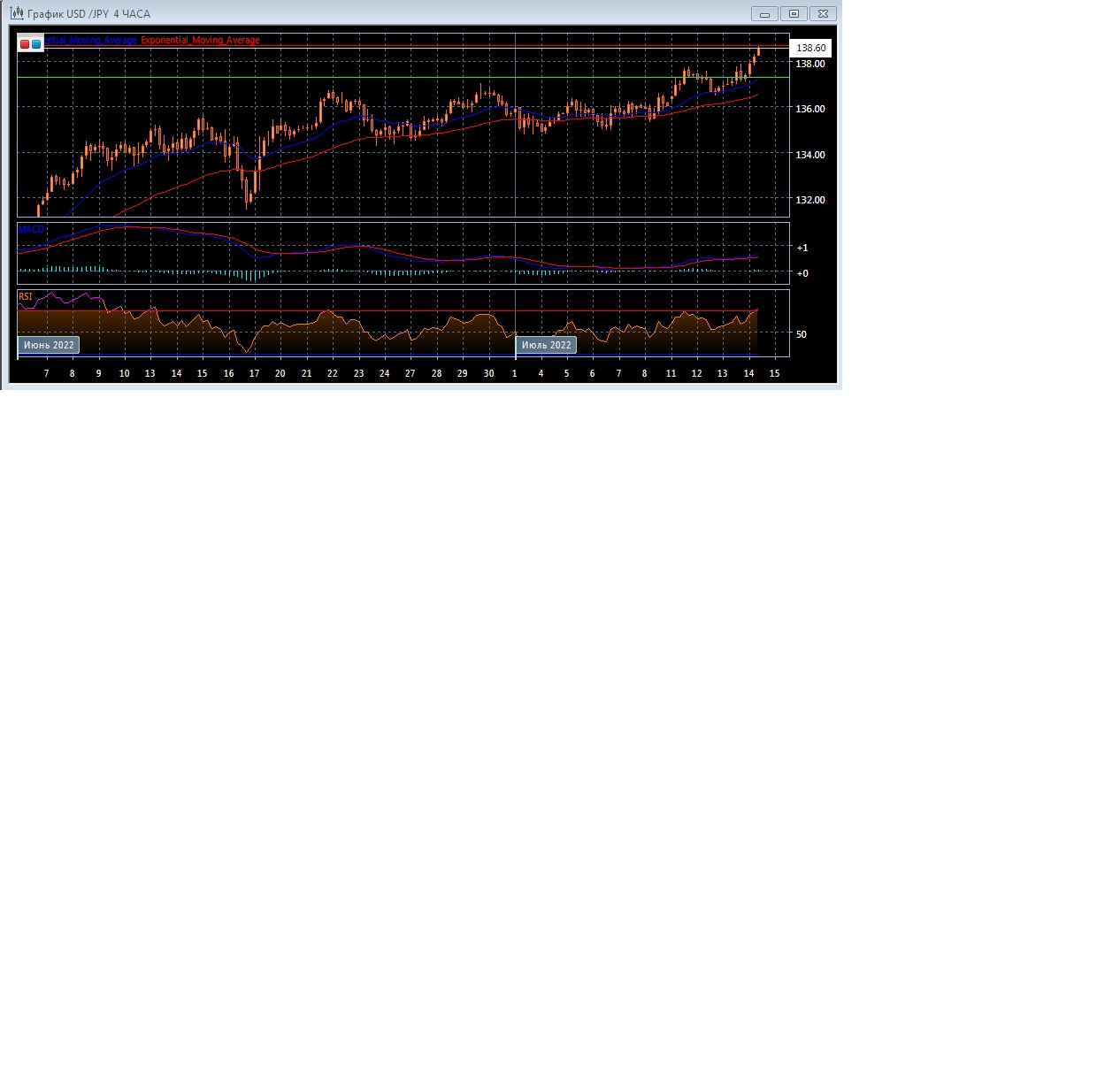 Скользящие средние с периодом 21 и 55 дней ускорились и продолжают движение вверх, увеличивая расхождение. Четырёхчасовой график прогрессирует в области выше экспоненциальных скользящих средних, что свидетельствует о развитии бычьего тренда на этом рынке в краткосрочной перспективе.
