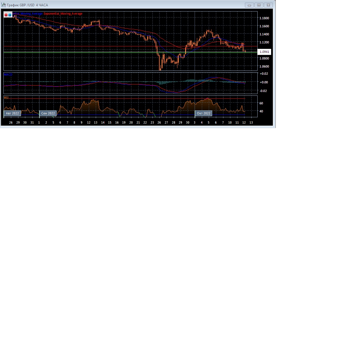 На четырёхчасовом графике скользящие средние продолжают двигаться вниз и начали увеличивать расхождение, что говорит в пользу нисходящего тренда на данном рынке в краткосрочной перспективе.