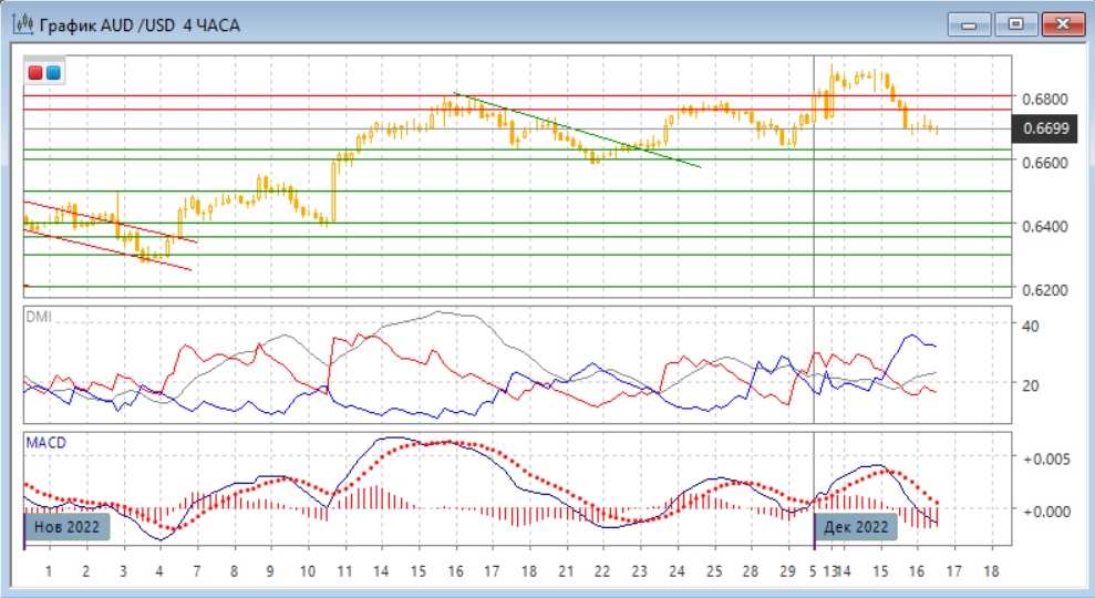 На дневном графике пара резко снизилась, что привело к возвращению ниже важного уровня сопротивления 0,6800, который был сопротивлением в ноябре. Таким образом, кратковременное преодоление 0,6800 может оказаться ложным пробоем, и снижение может продолжится. Ещё одним медвежьим сигналом является то, что свеча снижения 15 декабря, на которое произошло возвращение ниже уровня 0,6800, является широкодиапазонной - обычно сильный импульс в краткосрочной перспективе сохраняется. Тем не менее, пока пара выше ключевой зоны поддержки на 0,6600-0,6630.
