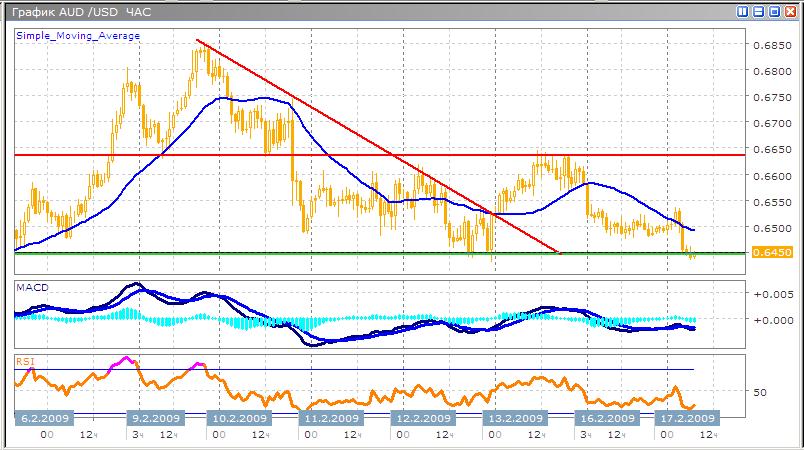 Пара штурмует уровень поддержки, и вероятно преодолеет его уже сегодня. Американский доллар начал сегодняшний день с укрепления против корзины основных валют, пользуясь спросом институциональных инвесторов. После торгов в достаточно узком ценовом диапазоне, пара вероятно пробьет его нижнюю границу, и торги продолжатся в нисходящем долгосрочном тренде. Осциллятор MACD сигнализирует о росте движущей силы медвежьего тренда, в то время как график RSI также развивается в нисходящем направлении. Рынок ожидает, что Банк Австралии продолжит снижать ставки, как того требует текущая экономическая ситуация.