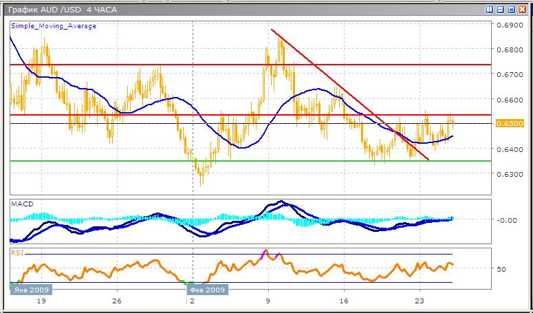 В настоящий момент пара приближается к нижней границе широкого ценового коридора, в котором пара торговалась на протяжении последних нескольких месяцев. Потенциал снижения в краткосрочной перспективе достаточно низок, поскольку доллар США теряет привлекательность в глазах участников торгов, как валюты-резерва. В среднесрочной перспективе, наиболее вероятным является сценарий кратковременного роста с последующим снижением и тестированием области 0.6350. Негативные данные, приходящие ежедневно из Австралии, играют не в пользу австралийца. Поскольку глобальный тренд является нисходящим, а интерес к доллару, вероятно, сохранится, в долгосрочном планировании пара находится под давлением. Волатильность торгов обусловлена достаточно высокими рисками, связанными с тем, что австралийский доллар является сырьевой валютой, поэтому броски на товарных рынках находят достаточно яркое отражение на графиках данной валютной пары. Кроме глобальных тенденций, на дальнейшее движение пары повлияет локальный коридор, в котором протекают торги, ограниченный уровнями поддержки и сопротивления.
