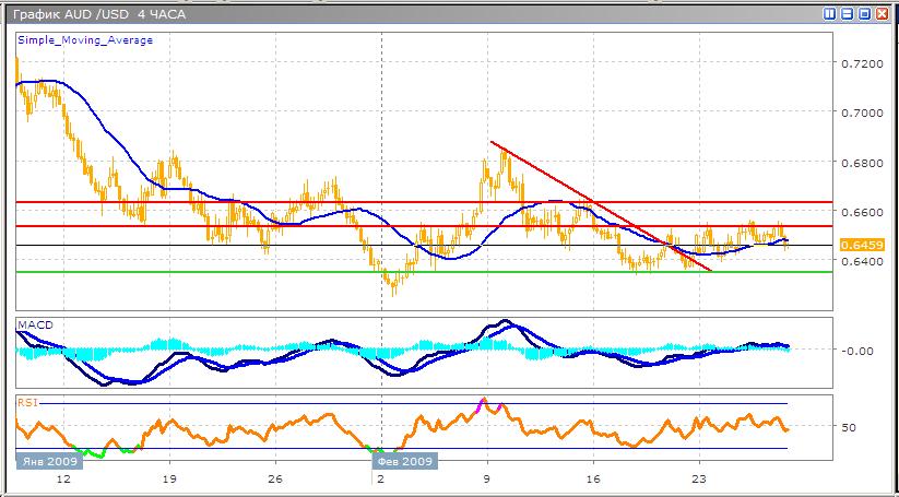 Пара продолжила колебания в узком диапазоне, который является актуальным последние несколько дней. Протестировав нижнюю границу 0.6350, которая также является и поддержкой, цена устремилась вверх, демонстрируя умеренный рост и остановилась у верхней границы трижды еще коснувшись, что видно на 4-часовом графике. Наиболее вероятно, что в среднесрочной перспективе снижение продолжится, на что указывают технические индикаторы. График RSI пересекает среднюю линию, сигнализируя о слабости быком, гистограмма осциллятора MACD пересекла нулевую ось и развивается в отрицательной зоне. Однако в данный момент время для продажи не совсем оптимальное, вход в рынок определим путем анализа графика более мелкого масштаба. На часовом графике видим слабые сигналы к росту, которыми пренебрегать не стоит. Осциллятор MACD подает сигнал на покупку, в то время как RSI разворачивается в сторону роста. Приоритетным направлением торговли остается нисходящее, вход в рынок определим на часовом графике, дождавшись завершения ожидаемой коррекции.