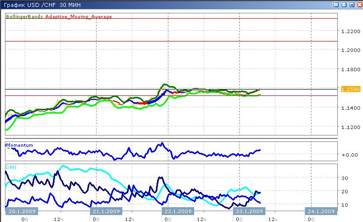 Немного упав в начале ночи до 1.1507, доллар вырос против франка до 1.1579, так что первый из указанных уровней будем считать пока что внутридневным минимумом. ADX показывает, что тренд не очень силён, и имеет тенденцию к развороту, то есть пара может как продолжить расти, так и начать падать. Если продолжится рост, то следующим уровнем сопротивления модет стать отметка 1.1620. В случае падения доллара линией поддержки, видимо, окажется 1.1520.