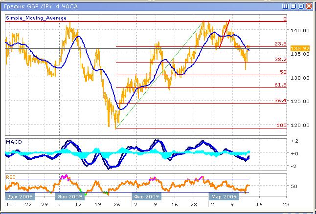 Текущий бросок едва ли изменит медвежьи настроения по паре, сценарий снижения наиболее вероятен. Цель среднесрочного снижения расположена у отметки 130.00, которая соответствует уровню Фибоначчи 50%, отложенного от среднесрочного восходящего тренда, который виден на 4-часовом графике. В настоящий момент технические индикаторы указывают на продолжение роста, поскольку бросок был значительным, он не может остаться без внимания быков. Однако совершенно очевидно, что последний гвоздь в гроб бычьего тренда уже вбит, и уже в обозримом будущем, цена снизится к заявленной цели.