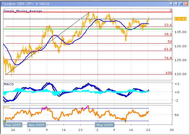 Текущий активный рост едва ли изменит медвежьи настроения по паре, поскольку в среднесрочном плане пара находится под давлением, что достаточно видно на 4-часовом графике, исходя из графических представлений. В краткосрочном же планировании, наиболее вероятен рост. Цель среднесрочного снижения расположена у отметки 130.85, которая соответствует уровню Фибоначчи 50%, отложенного от среднесрочного восходящего тренда, который виден на 4-часовом графике. В скором будущем ожидается формирование вершины, которая будет иметь пик вблизи уровня сопротивления 141.80. В настоящий момент технические индикаторы указывают на продолжение роста, вследствие активности покупателей, моментум восходящего тренда растет, что иллюстрирует гистограмма MACD и график индикатора RSI. В случае, если к началу европейской сессии цена продолжит рост, то пара с высокой долей вероятности достигнет уровня сопротивления. В противном случае, сформируется локальное сопротивление у отметки 140.00