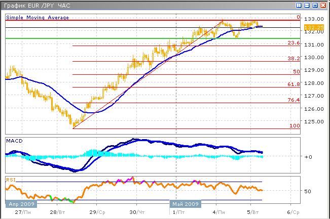 цель снижения к отметке 129.70, уровень коррекции Фибоначчи 38.2%. В настоящий