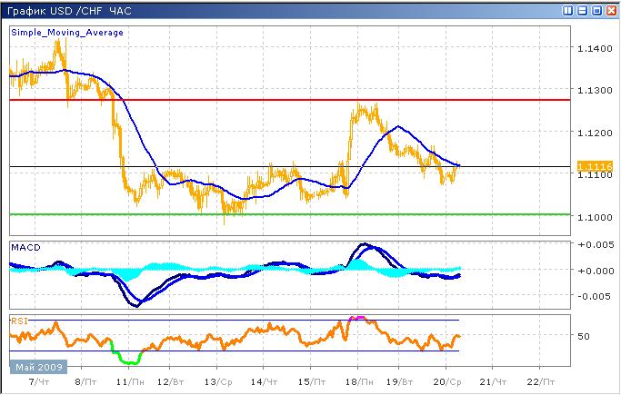 Пара все еще находится в широком боковом диапазоне, который достаточно ясно виден на часовом графике. Цена, отразившись от уровня 1.1270, достаточно быстро снизилась, при этом, коррекция близка к завершению, о чем свидетельствуют технические индикаторы. Участники торгов воздерживаются от активных действий, поэтому торги протекают достаточно спокойно, приближая цену к границам канала, отражая тенденции фондового рынка США. Технический анализ указывает на краткосрочное восстановление, к уровню 1.1200, отметка близкая к верхней границе канала. График индикатора RSI дважны протестировал область перепроданности, что повышает потенциал к краткосрочному росту. Гистограмма MACD слабо изменяется около нулевой отметки, отражая слабость как покупателей, так и продавцов.