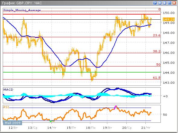 Утренний рост цен едва ли изменит медвежьи настроения по паре, сценарий снижения наиболее вероятен. Цель среднесрочного снижения расположена у отметки 148.00, которая соответствует уровню Фибоначчи 23%, отложенного от более раннего среднесрочного восходящего тренда, который виден на 4-часовом графике. В настоящий момент технические индикаторы указывают на продолжение роста, поскольку бросок был значительным, он не может остаться без внимания быков. Однако совершенно очевидно, что последний гвоздь в гроб бычьего тренда уже вбит, и уже в обозримом будущем, цена снизится к заявленной цели. Неожиданное падение доллар против основных валют стало причиной роста кросс-курсов, при этом, коррекция может быть весьма глубокой.