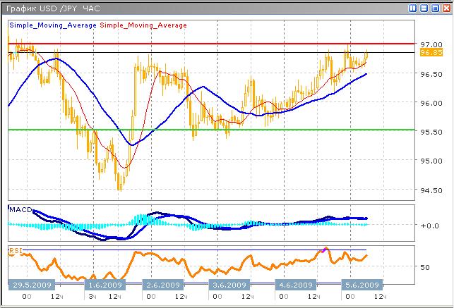 Динамику торгов на валютном рынке в настоящее время определяют фондовые рынки, поскольку они первыми отреагируют на начало восстановительных тенденций в крупнейших экономиках мира. В настоящий момент азиатские рынки растут на фоне оптимизма инвесторов в отношении недавнего позитива в американской банковской системы и роста на Уолл-стрит. В связи с этим, в краткосрочном периоде ожидается снижение японской валюты против доллара с целью 97.00. В среднесрочной перспективе достаточно велика доля вероятности роста пары к уровню 100.00, после отработки данного уровня, пара будет иметь сильный потенциал к снижению, которого в настоящий момент не хватает. Гистограмма MACD находится у нулевой оси, иллюстрируя падение моментума возрастающего тренда. Аналогичный сигнал подает и индикатор RSI, который, отразившись от нижней границы области перекупленности, завис в верхней половине поля. Настоящий момент не является выгодным для входа в рынок, рекомендуется дождаться завершения краткосрочного возрастающего тренда, который уже выдыхается, и занять позицию в бычьем тренде с большим потенциалом к росту.