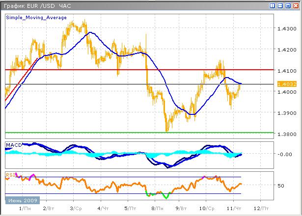 Снижение пары, вызванное ожиданием роста инфляционного давления, перед публикацией отчетов ФРС, вероятно завершится у уровня поддержки 1.3800, уровень достаточно долго сдерживал давление медведей. Несмотря на то, что вчерашний день на фондовых рынках завершился падением, слабо поддержанным фундаментальными данными, доллар США получил поддержку. В среднесрочной перспективе, все же, ожидается рост пары по ряду причин, в том числе техническим. Индикатор MACD подает сигнал на покупку сразу двумя средствами, с одной стороны, гистограмма пересекает скользящие средние индикатора снизу вверх, с другой стороны, моментум нисходящего тренда формирует локальный максимум, демонстрирую разворот. График индикатора RSI пересекает среднюю линию, что дает основание полагать, что нисходящий тренд находится под угрозой, или, по меньшей мере, сигнализирует о том, что от дальнейших продаж в ближайшее время стоит отказаться.