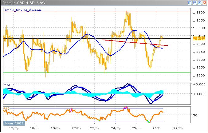 Падение доллара США против британской валюты несколько замедлилось, вероятно по причине завершения торговой недели, поскольку спекулянты не желают оставаться в рынке на продолжительный срок. В краткосрочной перспективе ожидается снижение с целью, по меньшей мере, к уровню 1.6400, ближайший значимый уровень, вблизи которого ранее отмечалась высокая активность участников торгов. Технические индикаторы указывает на сокращение движущей силы покупателей, которые до сего дня не смогли толкнуть цену выше уровня 1.6600. График индикатора RSI длительное время растет, что не может продолжаться вечно, в настоящий момент мы наблюдаем снижение графика, что может насторожить покупателей. Гистограмма MACD формирует локальный максимум, очевидно, что активность быков падает. Однако потенциал роста все еще не исчерпан, сегодняшние торги на американских фондовых рынках определят характер тенденции по паре.