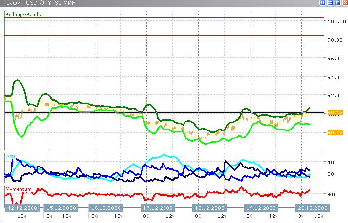 колеблясь уже некоторое время вблизи уровня 90.00. Шестидневный максимум usd против йены был достигнут на уровне 90.09. В краткосрочном периоде преобладает восходящий слабый тренд, который продолжает ослабляться, так как кривая DI+ по всей видимости какое-то время будет ползти вниз. Скорость роста при этом не так уж мала, особенно по сравнению с остальными парами на сегодня, и составляет приблизительно +0.65. Если пара продолжит расти, то линия поддержки, видимо, останется на 89.80, а линией сопротивления может оказаться уровень 90.4.