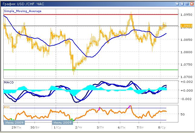 Ожидается продолжение сегодняшнего роста, по итогам дня, цена может закрепиться выше уровня сопротивления 1.0950. Пара очень активно отреагировала на возврат интереса инвесторов к доллару США на фоне идей относительно инфляционных рисков в американской экономике. На фоне слабости фондовых рынков США, рост пары продолжится еще несколько дней, однако у быков не очень много шансов. График индикатора RSI приближается к верхней границе области перекупленности, замедляя рост, что должно насторожить покупателей. Осциллятор MACD подает сигнал на продажу, с одной стороны пересечением гистограммой скользящих средних, с другой – готовящимся соответствующим пересечением скользящих средних.
