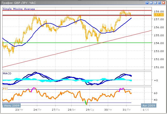 Коррекция по паре замедляется, что видно на часовом графике, и поддержано также фундаментальными тенденциями. Волатильность на фондовых рынках, и вероятное продолжение роста станет причиной укрепления пары, поскольку иена снова потеряет привлекательность. Снижение, которое мы видели на протяжении сегодняшних ранних торгов, вероятно, завершится к началу европейской сессии. Технические индикаторы указывают на ослабление медвежьего тренда, при этом возникают краткосрочные сигналы к коррекции восходящего броска. Гистограмма MACD формирует локальный минимум, указывая на ослабление продавцов. График индикатора RSI, достигнув области перекупленности, борется с ранними продажами. В краткосрочном планировании ожидается коррекция, на средний срок ожидается рост с целью 160.00