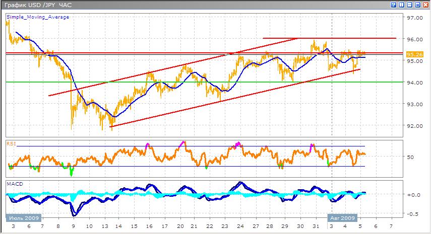 Пара продолжила торги в пологом восходящем тренде, встретив сопротивление на уровне 96.00, которое, вероятно, будет взято в ближайшее время. В течение последней торговой недели, данный уровень сдерживал натиск быков, однако, среднесрочные перспективы по паре являются восходящими. Передышка на фондовых рынках отразилась на данной паре снижением активности покупателей, поскольку замедление роста котировок акций пошатнуло склонность инвесторов к риску, в результате чего иене может вернуться привлекательность. По словам азиатских аналитиков, текущее ослабление рынков было необходимым для возобновления роста, что в дальнейшем может толкнуть пару вверх. Технические индикаторы пока не дают каких-либо сигналов, в настоящий момент рекомендуется воздержаться от торговли, дождавшись роста на фондовых рынках и размещения торговой позиции в восходящем направлении.