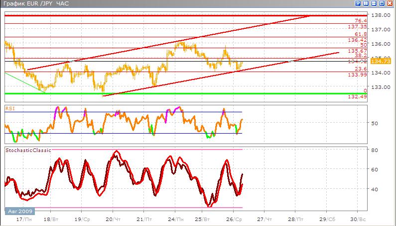 Валюта перешла плавно из флета в восходящий коридор, где она стремиться достигнуть на ближайшей задачей уровня 61.8% по Фибоначчи, а в дальнейшем линии сопротивления 137.89.