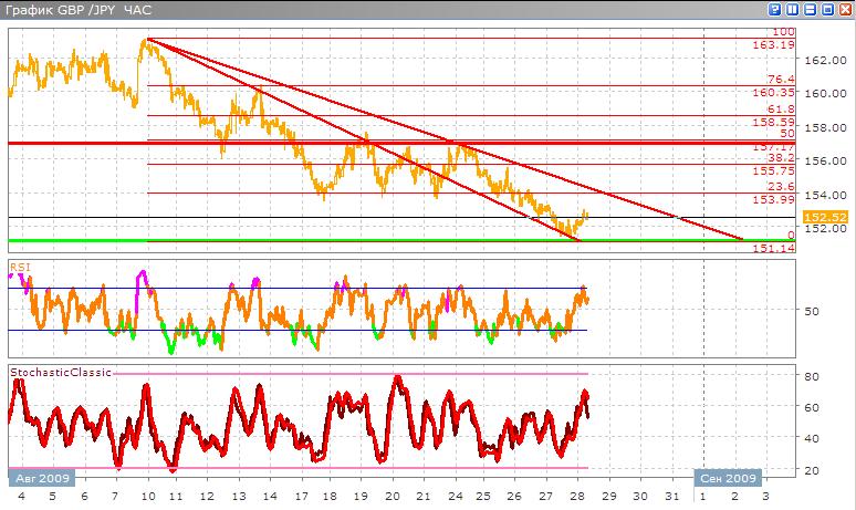 линия поддержки — 151.14 линия сопротивления — 156.94