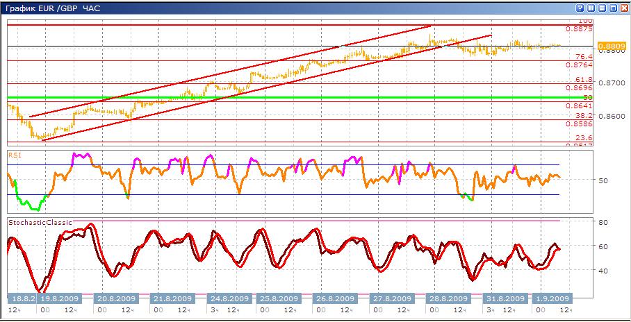 Как было предположено ранее в обзорах теханализа валюта достигла максимума своего роста на данный момент, и как это обычно бывает после таких серьезных движений находится сейчас во флете или как многие говорят в боковом движении. Скорее всего, в дальнейшем произойдет коррекции вниз, во время которого обычно происходит фиксация прибыли маркет-мейкерами. Кстати, подобную ситуацию описывает и классические индикаторы Stohastic находится в моменте пересечения по направлению вниз, RSI, к сожалению, нам так точно ситуацию не описывает. Уровни остаются теже актуальными.